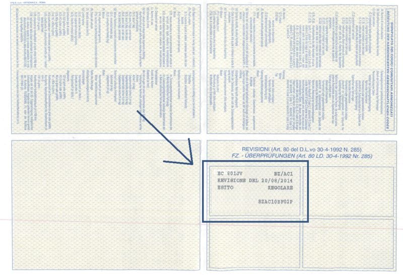 - Para mover el coche conduciéndolo, debe tener una revisión en vigor similar a la ITV, tal y como exige la legislación italiana aplicable. En la ficha técnica hay que buscar el apartado «Revisioni» y comprobar la vigencia de la última. Si los Carabinieri nos paran y se ha caducado la última revisión, mal asunto: mínimo son 169 euros de multa.
